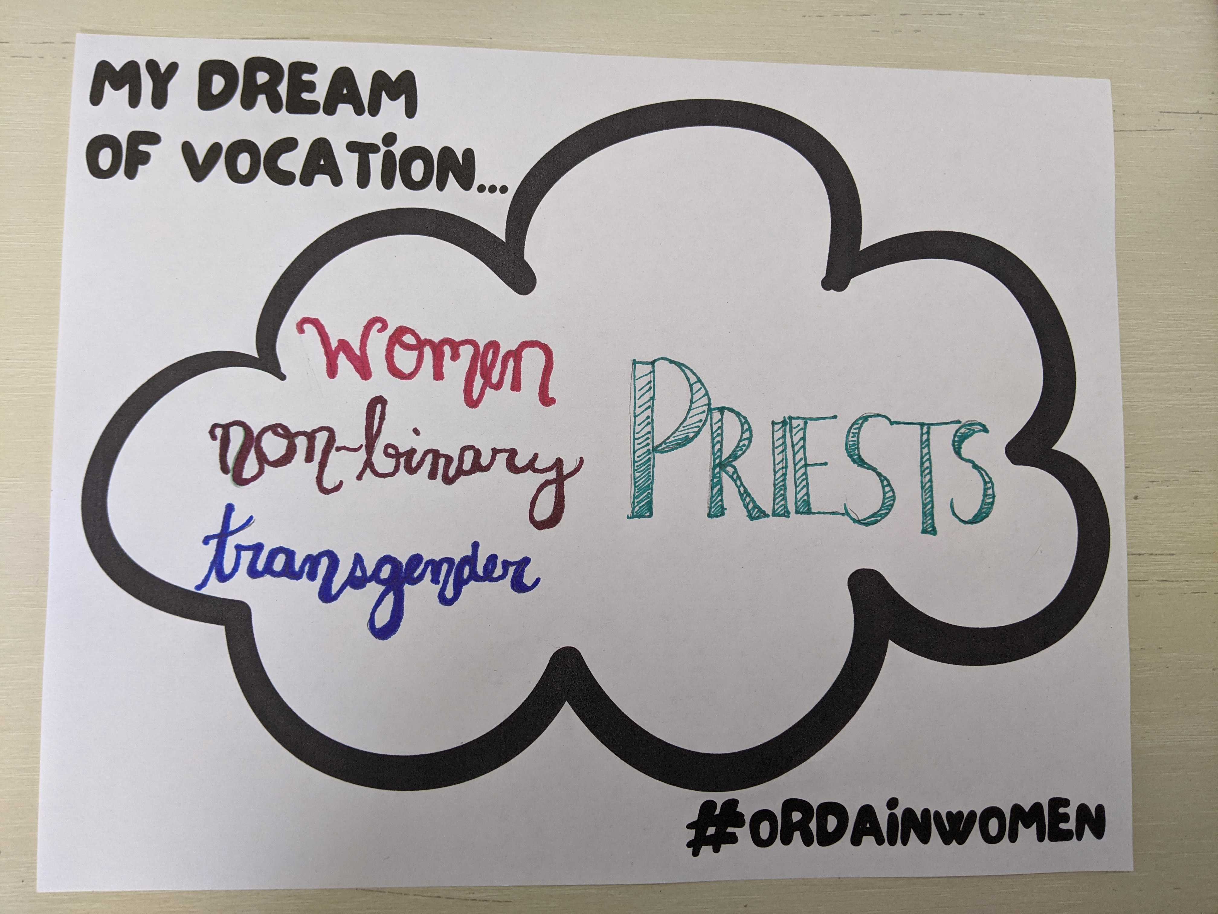 Missed Vocations Sunday but still want to participate? Download our printable sign, fill it in (scroll down for lots of inspiration!), and then share it on social media with the hashtag #OrdainWomen or send it to us to share!